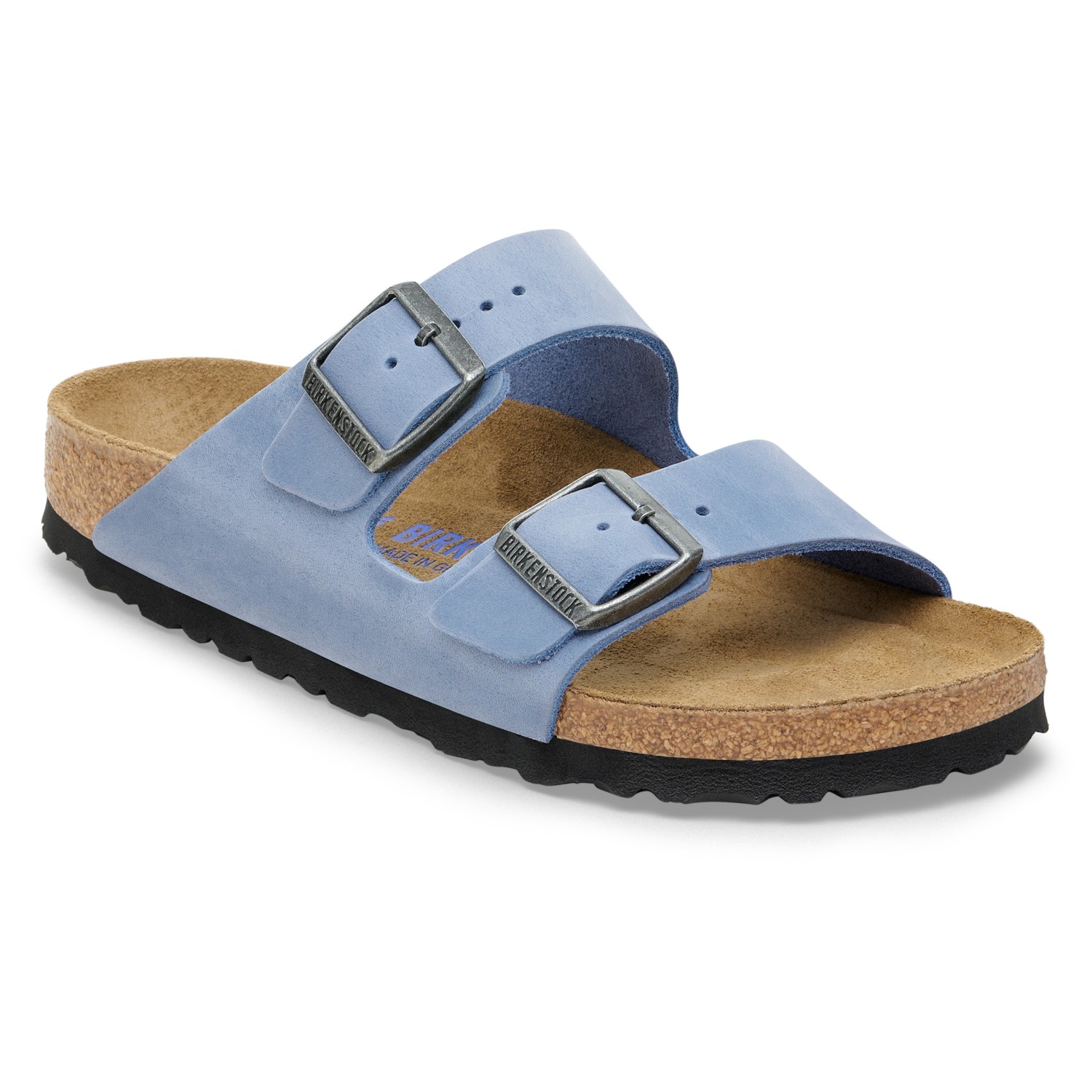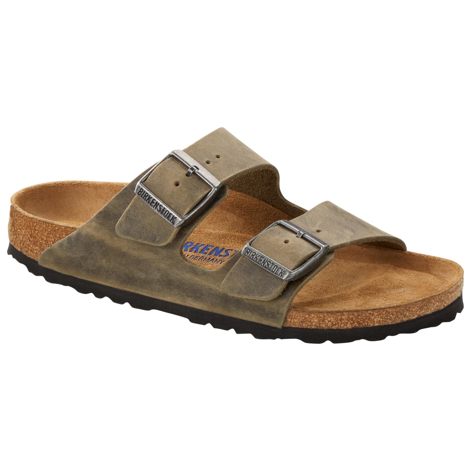 Sottopiede anatomico in sughero e lattice Tomaia: pelle nabuk, oliata Fodera: camoscio Suola: EVA Dettagli: cinturino con due fibbie in metallo regolabili individualmente "Made in Germany"