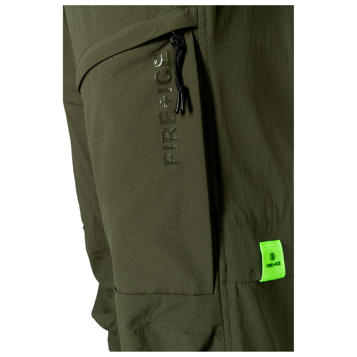 - 2 tasche sui glutei, 2 tasche sulla gamba con cerniera, 2 tasche laterali con cerniera