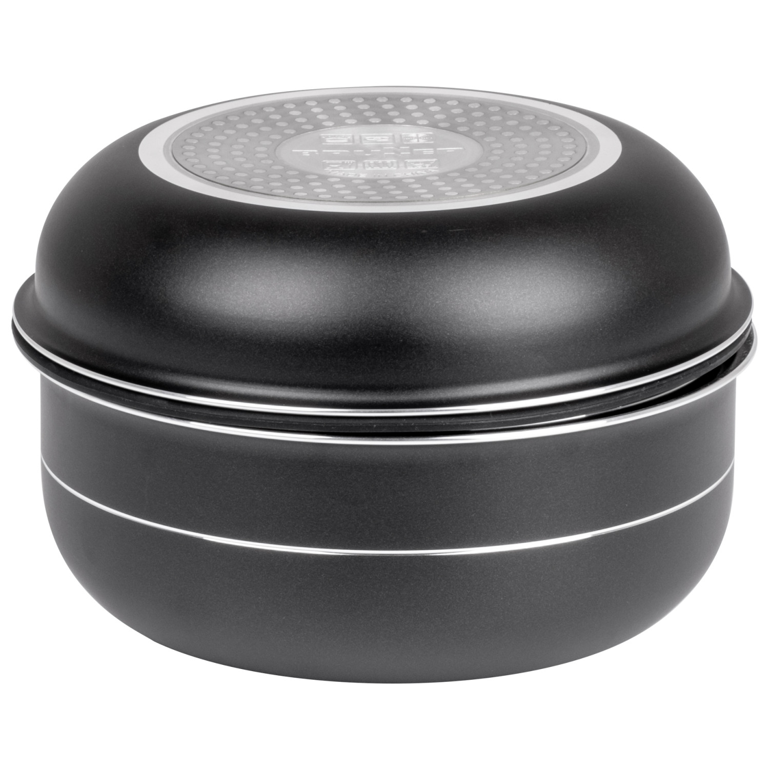 - 1 pentola grande (24 cm, altezza: 10 cm); 1 pentola piccola (20 cm, altezza: 9 cm); 1 padella (24 cm; altezza: 5 cm); 1 coperchio (24 cm); 1 manico