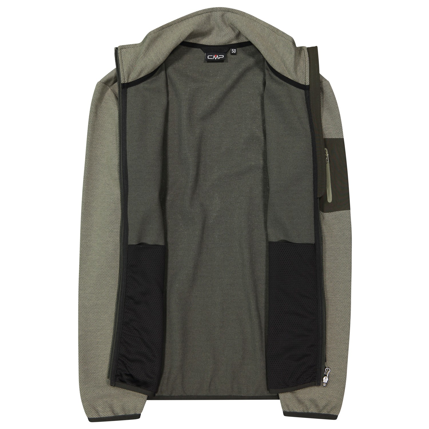 - 1 tasca sulla manica, 2 tasche laterali con cerniera