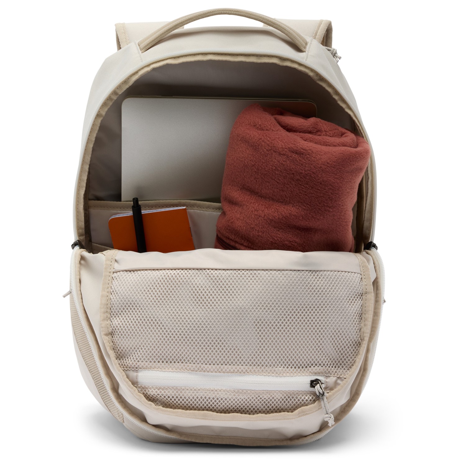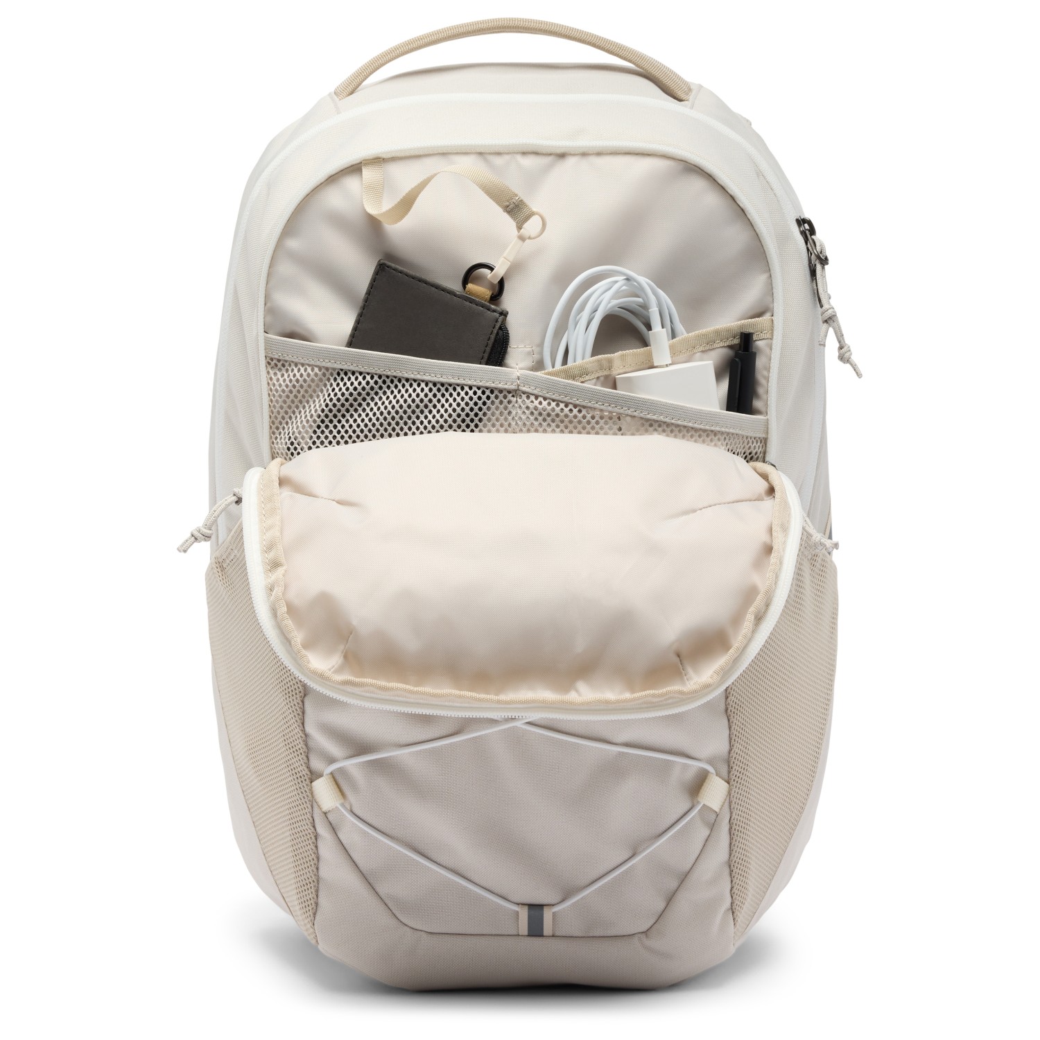 - 2 portaborracce, 2 scomparti interni, supporto in gomma, scomparto laptop (15"), supporto per luce posteriore, tasca frontale con cerniera, anello portachiavi, scomparto tablet (9")