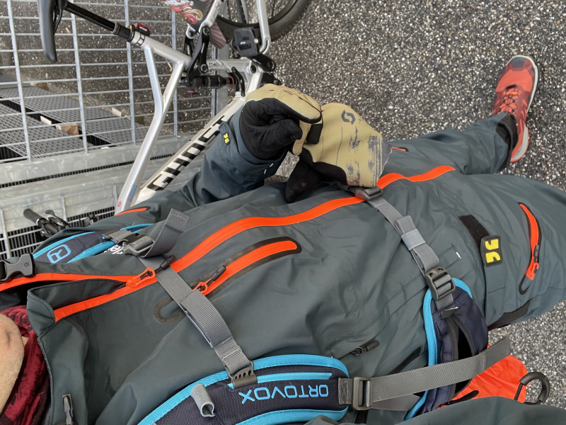 - Chiusure a strappo sulle maniche, Coulisse al collo, Patch logo, dettagli riflettenti, Cerniera sui fondi gamba, vita regolabile, Zip-Off