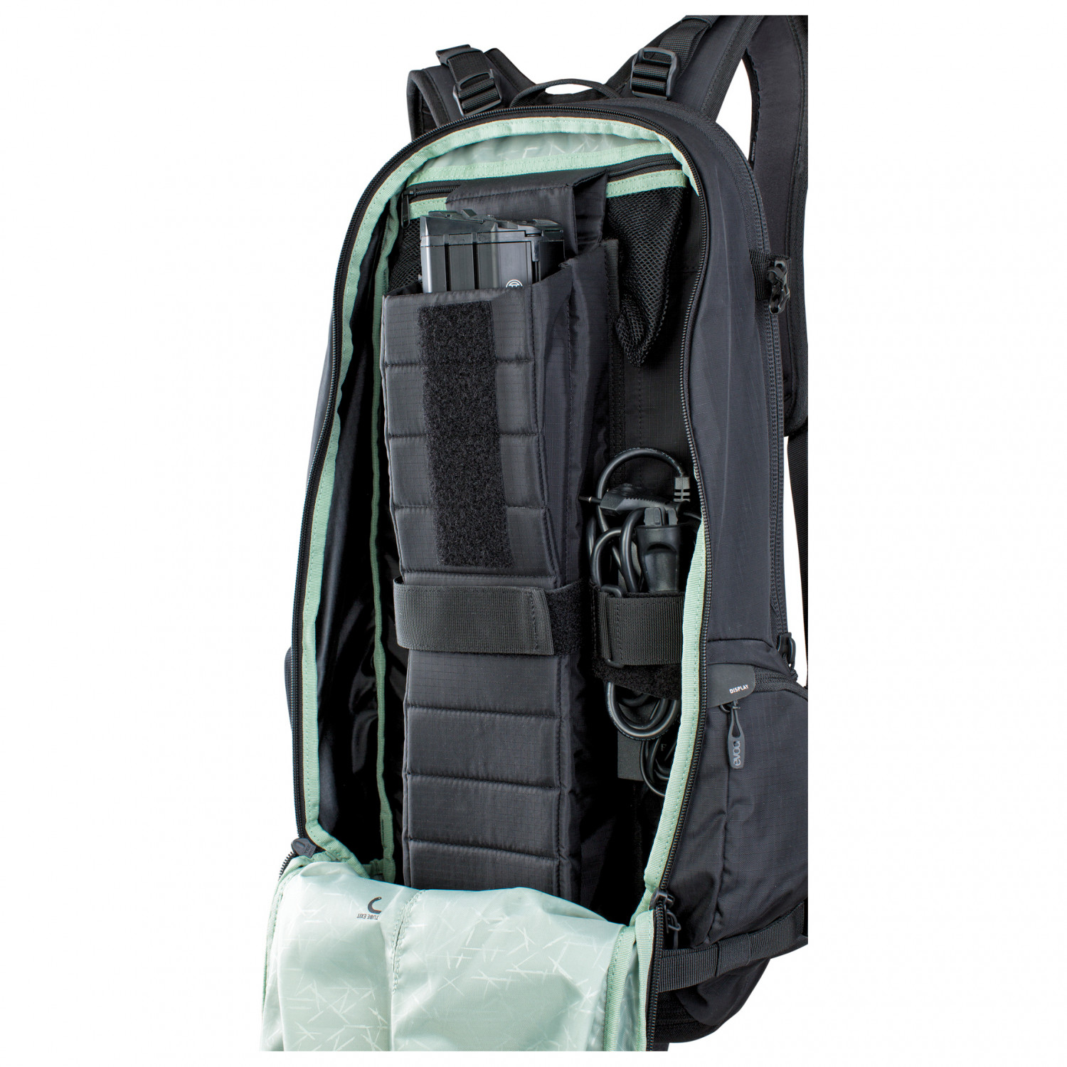 Zaino da bicicletta con paraschiena e vano batterie