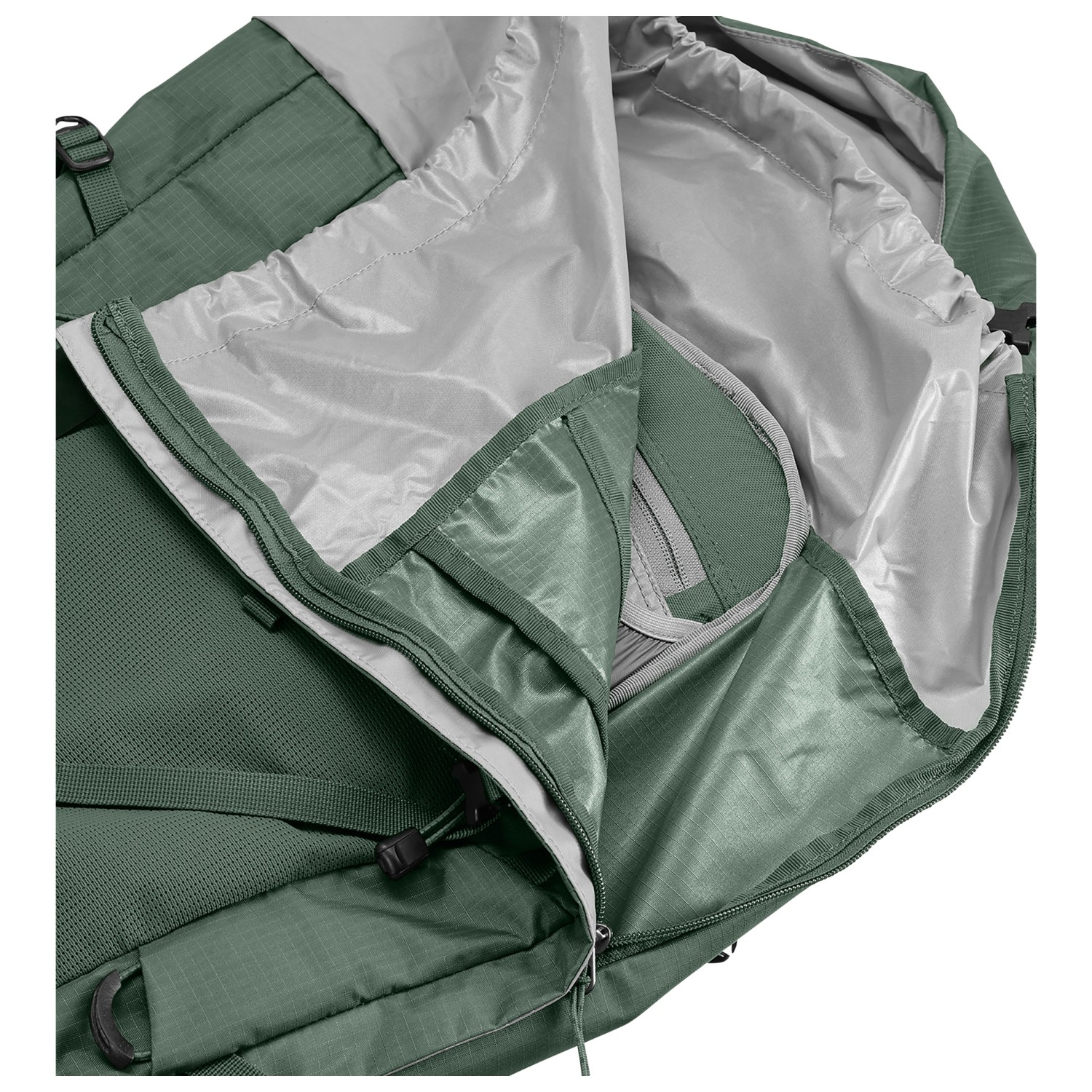 - 2 tasche su cintura lombare, scomparto del coperchio, porta piccozze e bastoncini, vano frontale, tasca laterale con cerniera, anello portachiavi, tasca laterale mesh