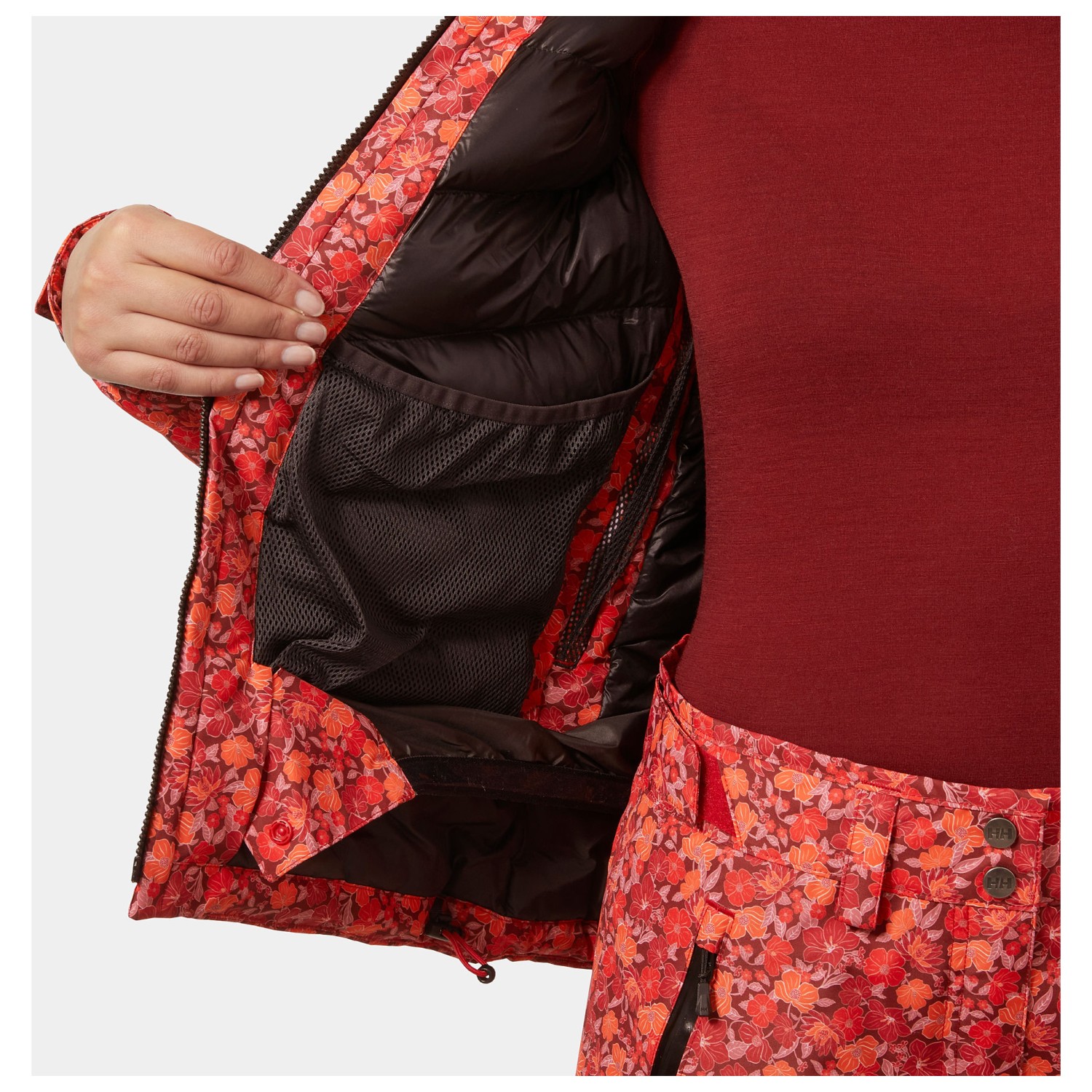 - 2 tasche diagonali, Tasca skipass, 1 tasca interna con cerniera, 1 tasca sul petto con cerniera, 1 tasca interna a rete