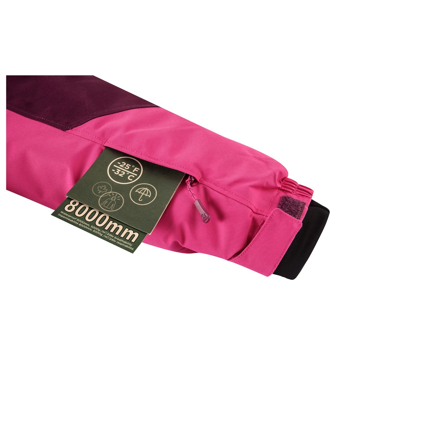 - stampa del logo, Chiusure a strappo sulle maniche, Ghette sulle finiture maniche, dettagli riflettenti, Vita elastica, passante per pollice, Colletto verticale, ginocchio rinforzato, Protezione bordi