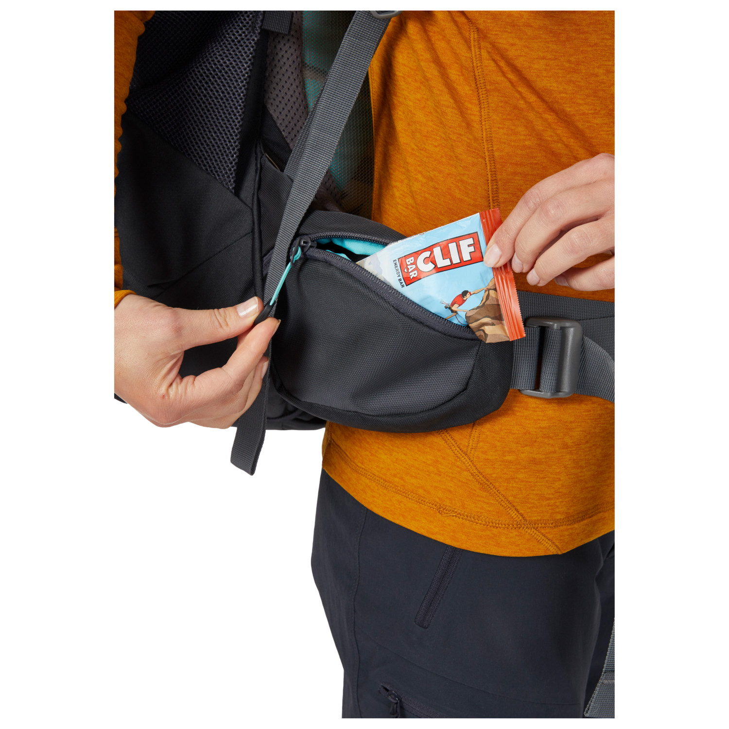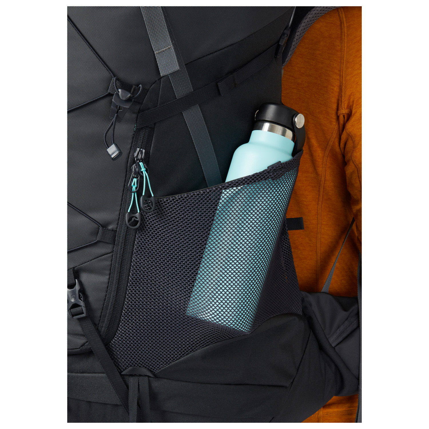 - 2 tasche laterali, fissaggion per bastoncini da trekking, cinghie di fissaggio sul davanti, scomparto inferiore, scomparto del coperchio, supporto in gomma