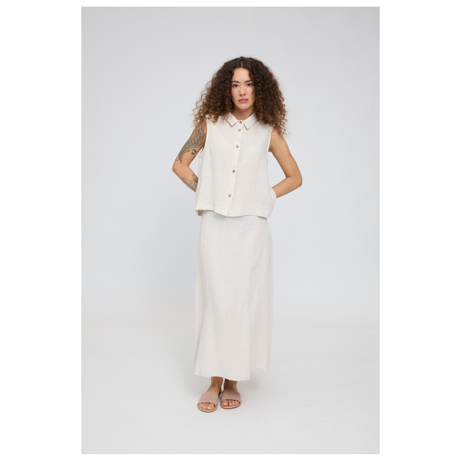 Mazine - Women's Sleeveless Linen Blouse - Camicetta