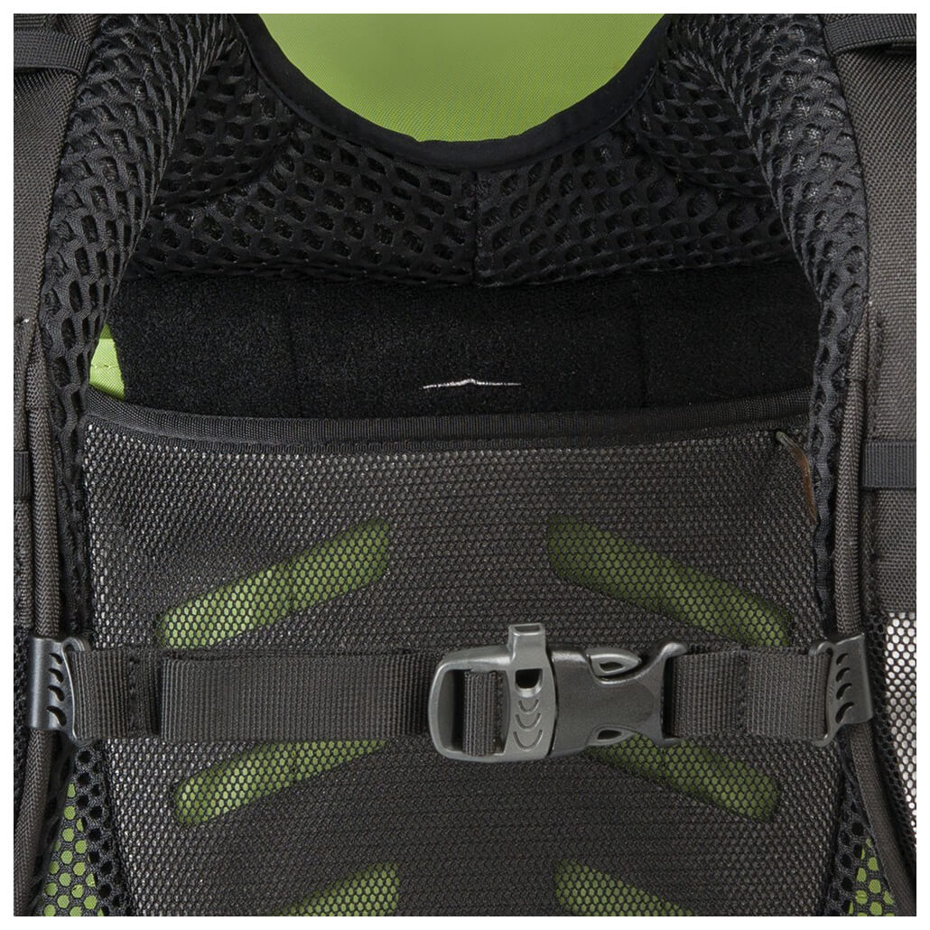 - Cintura pettorale, Spallacci imbottiti, Cintura lombare imbottita, Schienale in rete, lunghezza schienale regolabile