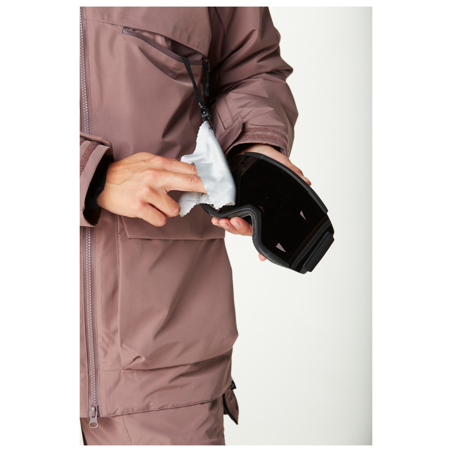 - Finiture interne elastiche, Chiusure a strappo sulle maniche, Cordino nell’orlo, Raccogli-neve