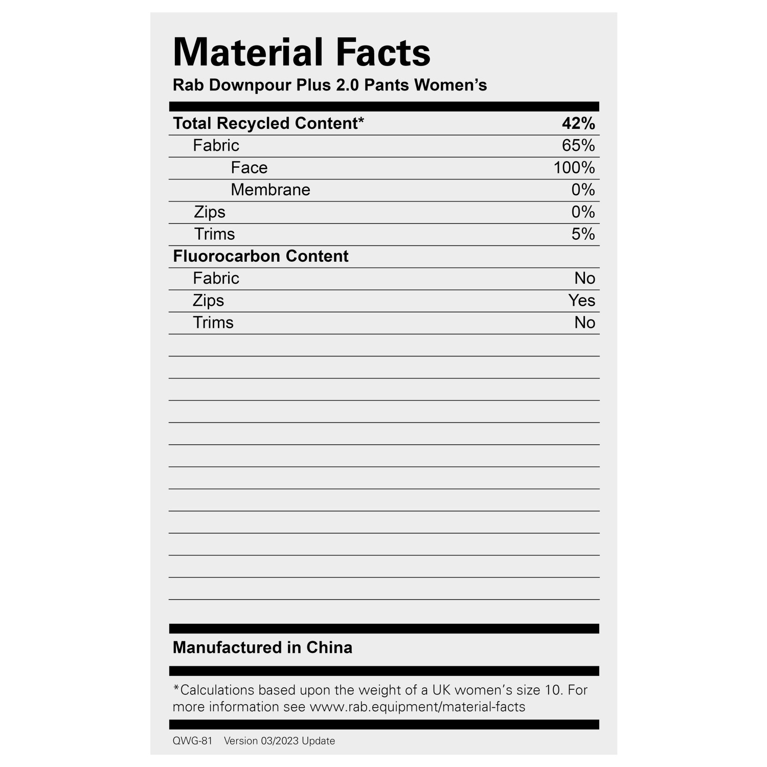 - traspirante, senza PFC/PFAS, impermeabile all’acqua, antivento