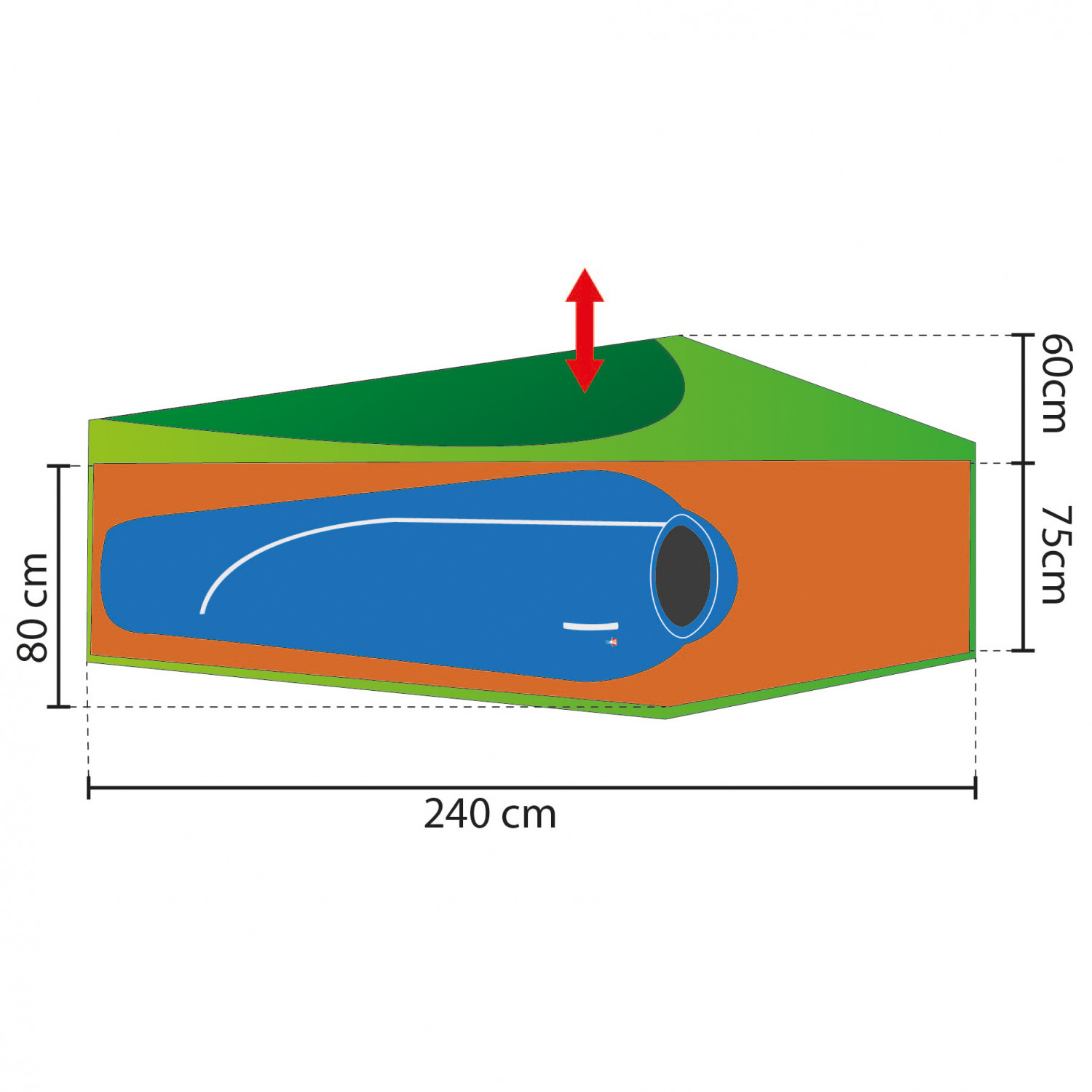 - Nylon Ripstop 30D; colonna d’acqua 3.000 mm; rivestimento in silicone su entrambi i lati