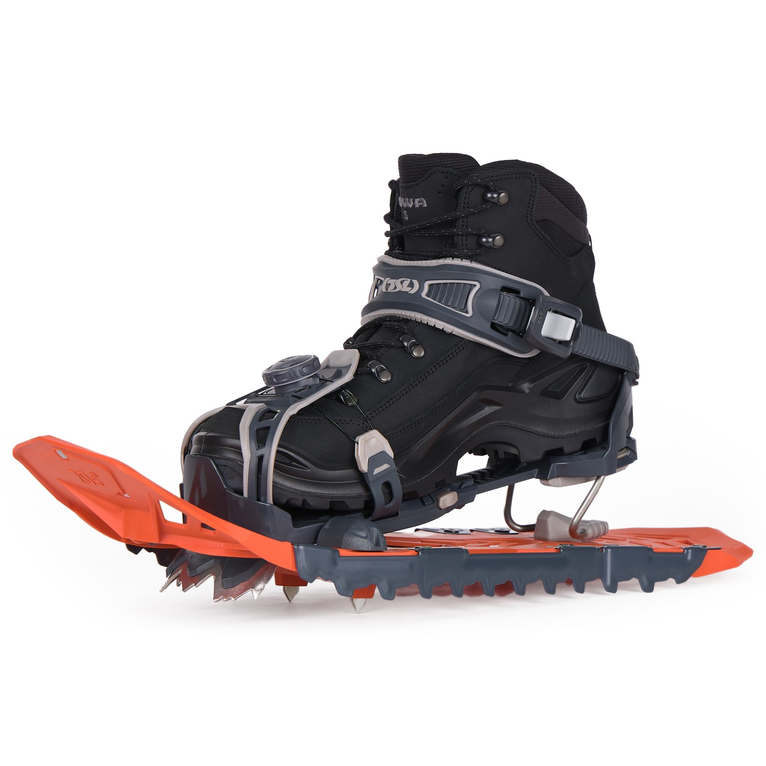 Gli attacchi di queste racchette molto probabilmente non sono adatti agli scarponi da snowboard. Per le tue esigenze ti consiglierei una racchetta da neve MSR con l'attacco Paragon™.